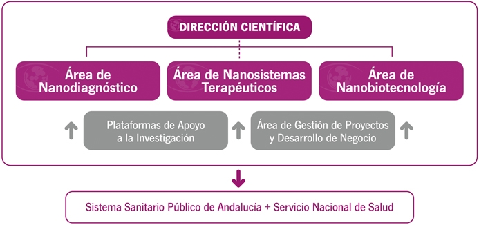 La actividad científica de BIONAND comprenderá tres áreas principales: Área de Nanodiagnóstico, Área de Nanosistemas Terapéuticos y Área de Nanobiotecnología. Cada una de estas áreas incluirá diversas líneas estratégicas, en las que se enmarcarán los diferentes grupos de investigación del centro.